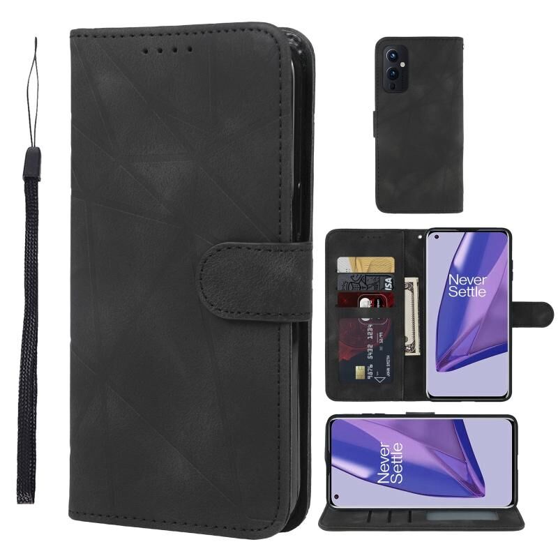 Για OnePlus 9 δέρμα αίσθηση γεωμετρικές γραμμές δέρμα τηλέφωνο υπόθεση (μαύρο)
