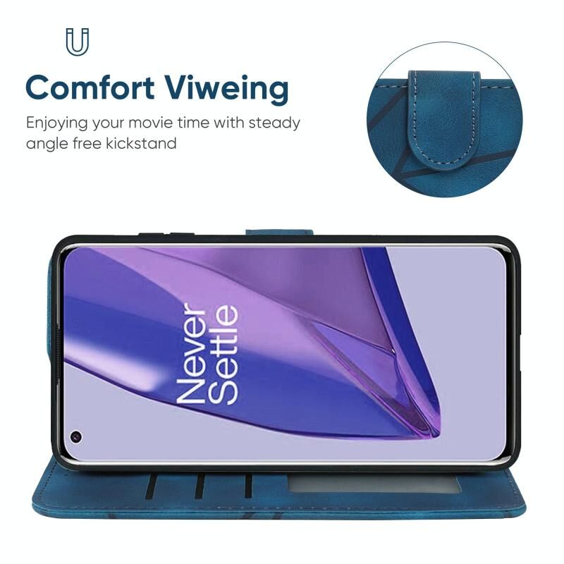 Για OnePlus 9 Skin Feel γεωμετρικές γραμμές δερμάτινη θήκη τηλεφώνου (μπλε)