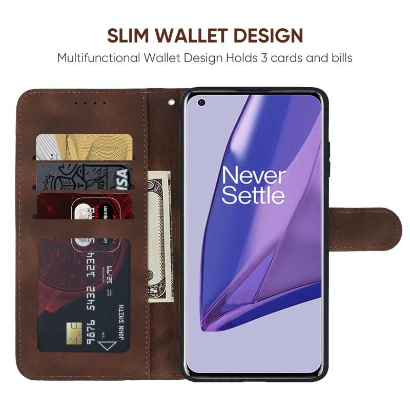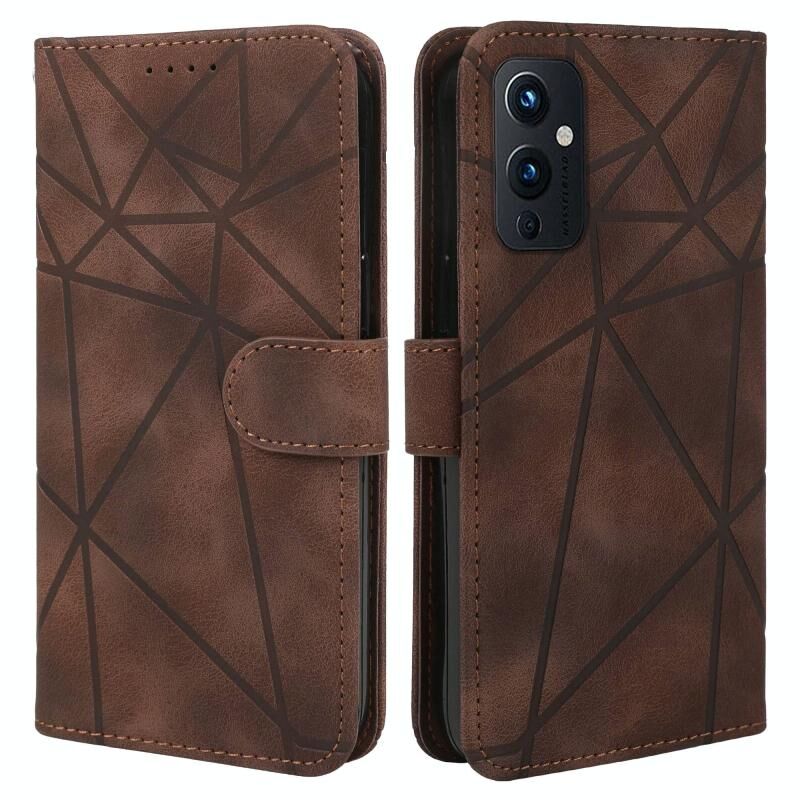 Για OnePlus 9 δέρμα αίσθηση γεωμετρικές γραμμές δέρμα τηλέφωνο υπόθεση (καφέ)