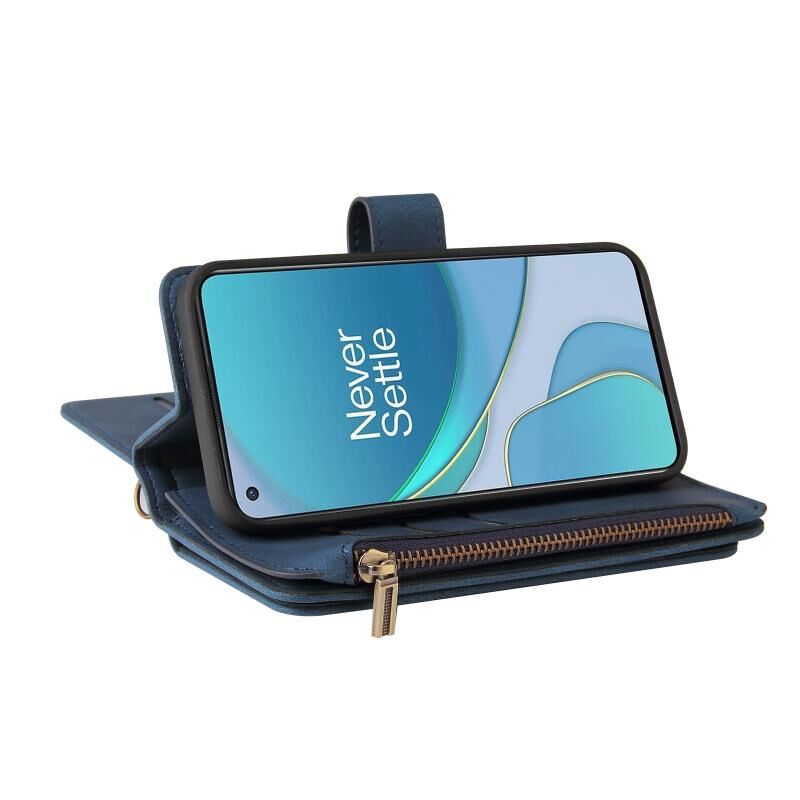 Για OnePlus 9 δέρμα αίσθηση PU + TPU οριζόντια Flip δερμάτινη θήκη με κάτοχο & 15 κάρτες υποδοχή & πορτοφόλι & φερμουάρ τσέπη & κορδόνι (μπλε)