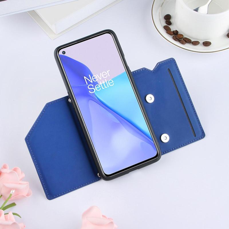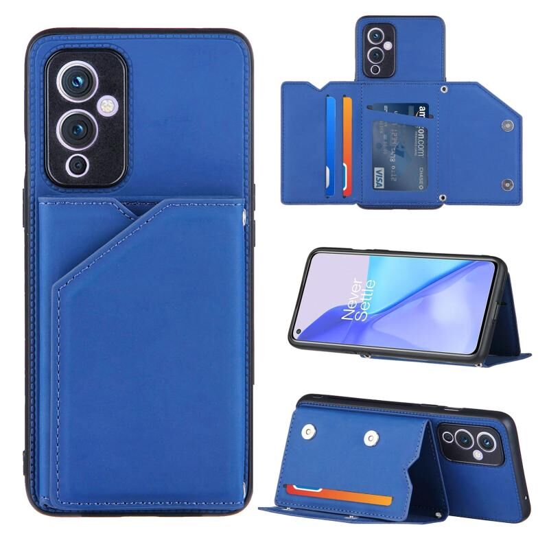 For OnePlus 9 Skin Feel PU + TPU + PC Back Cover Shockproof Case with Card Slots & Holder & Photo Frame(Blue)