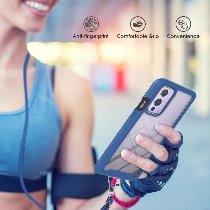 For OnePlus 9 Starry Sky Solid Color Series Shockproof PC + TPU Protective Case with Neck Strap(Blue)