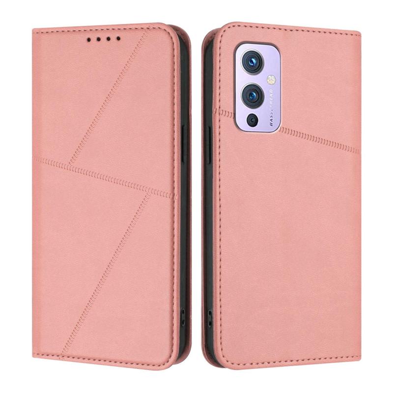 For OnePlus 9 Strong Magnetic Frosted Flip Leather Phone Case(Pink)