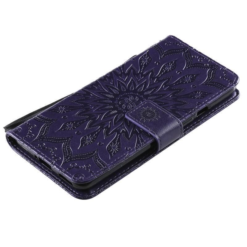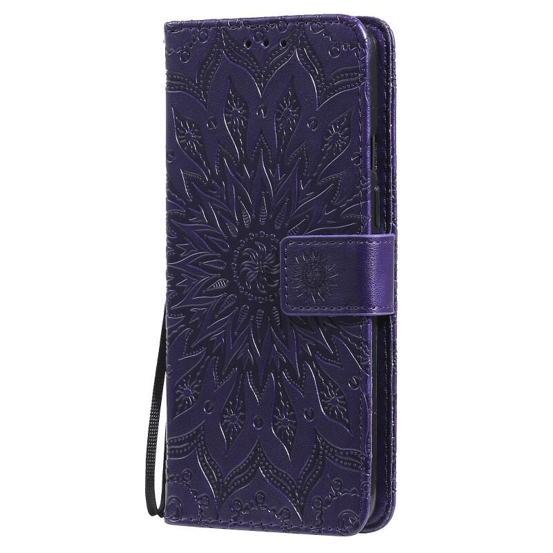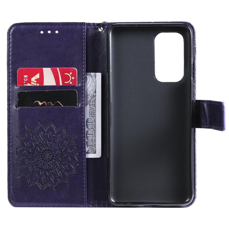 Για OnePlus 9 Sun ανάγλυφο μοτίβο οριζόντια Flip δερμάτινη θήκη με υποδοχή κάρτας & κάτοχος & πορτοφόλι & κορδόνι (μωβ)