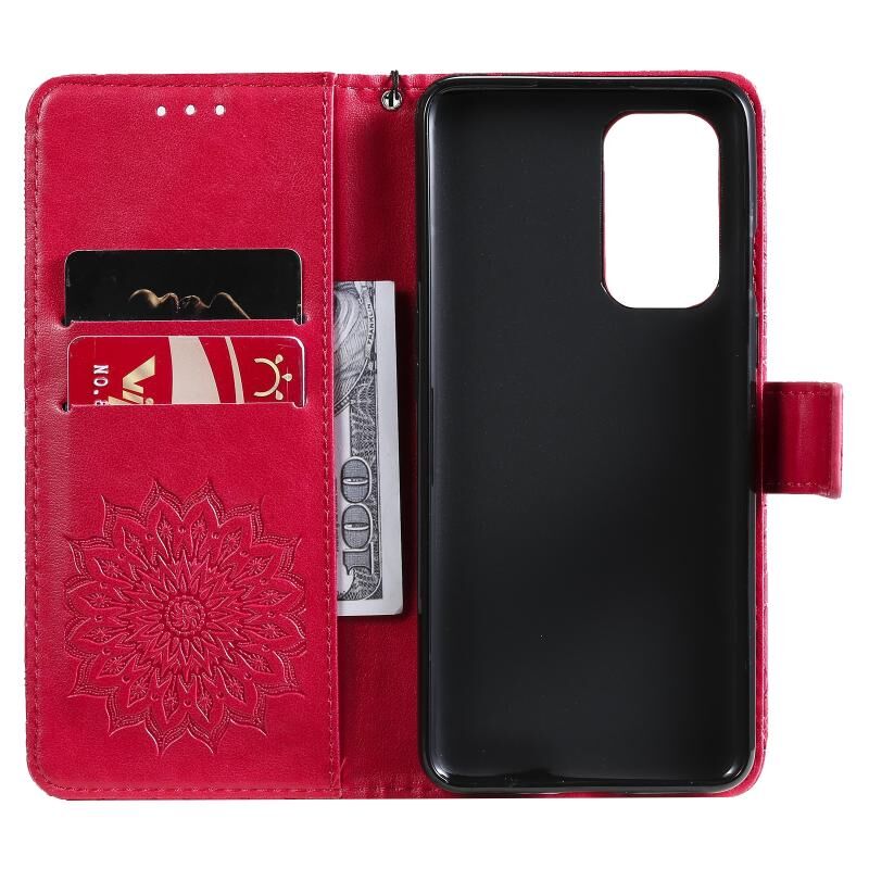Για OnePlus 9 Sun ανάγλυφο μοτίβο οριζόντια Flip δερμάτινη θήκη με υποδοχή κάρτας & κάτοχος & πορτοφόλι & κορδόνι (κόκκινο)