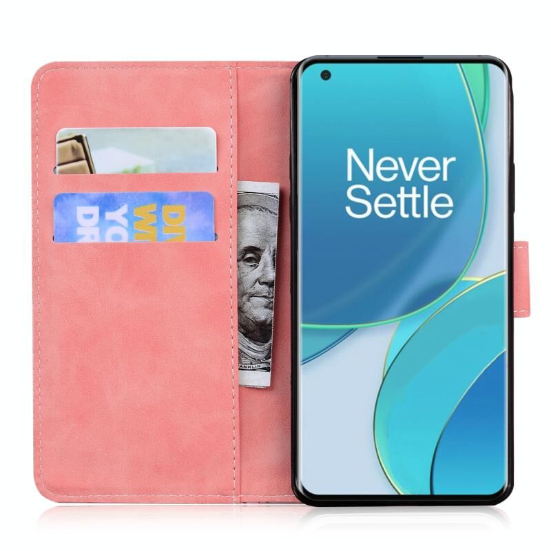 For OnePlus 9 Tiger Embossing Pattern Horizontal Flip Leather Case with Holder & Card Slots & Wallet(Pink)