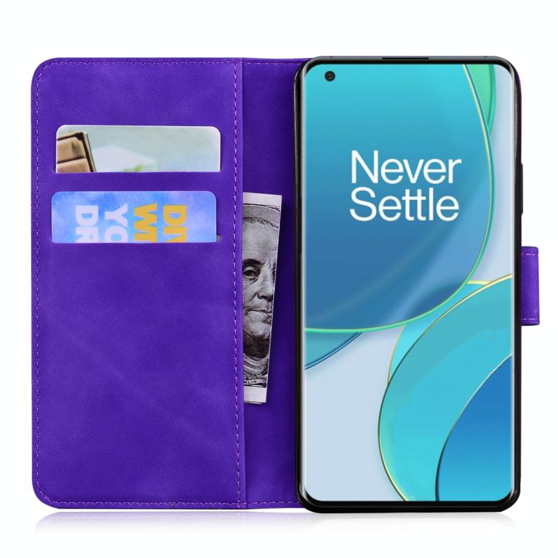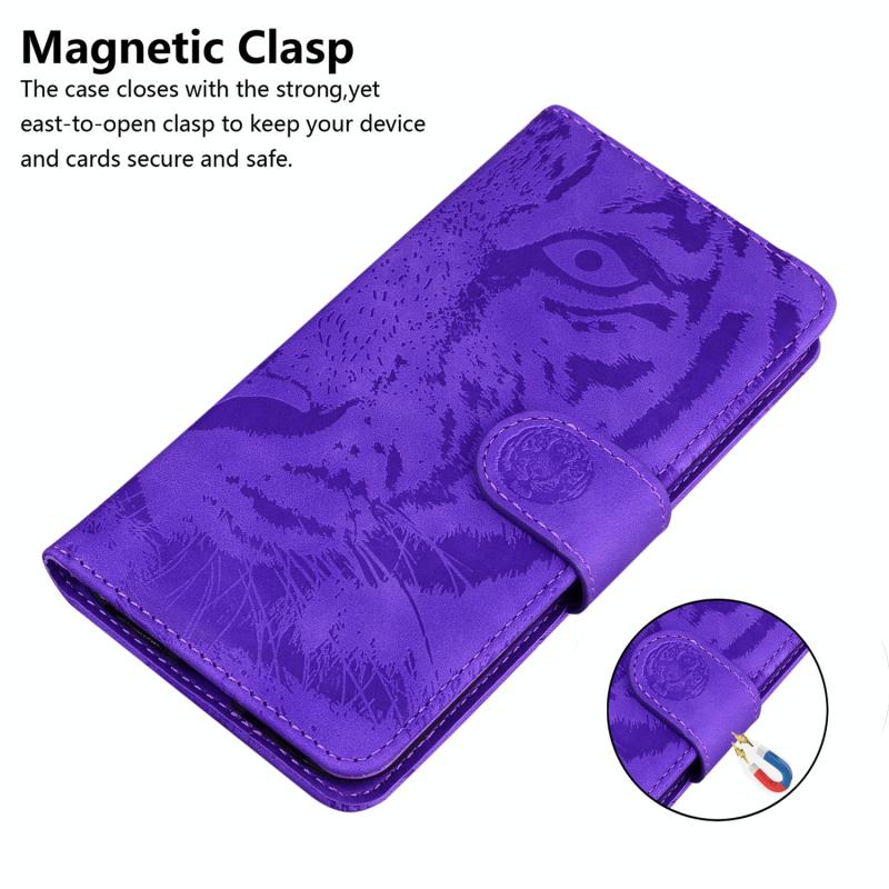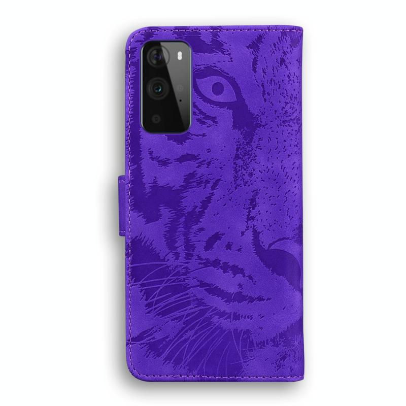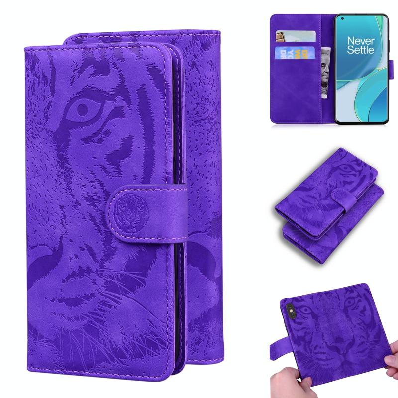 For OnePlus 9 Tiger Embossing Pattern Horizontal Flip Leather Case with Holder & Card Slots & Wallet(Purple)