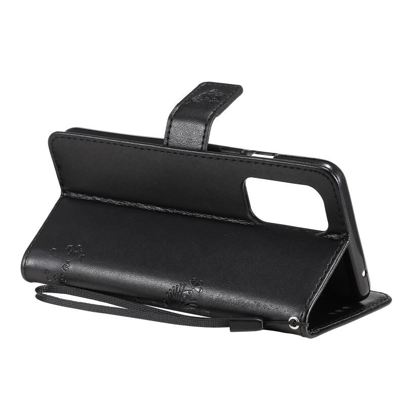 Για OnePlus 9 δέντρο & Cat μοτίβο πιεσμένη εκτύπωση οριζόντια Flip PU δέρμα υπόθεση με κάτοχο & υποδοχές για κάρτες & πορτοφόλι & κορδόνι (μαύρο)