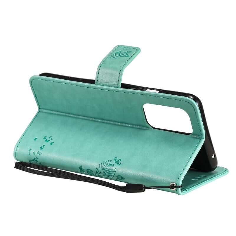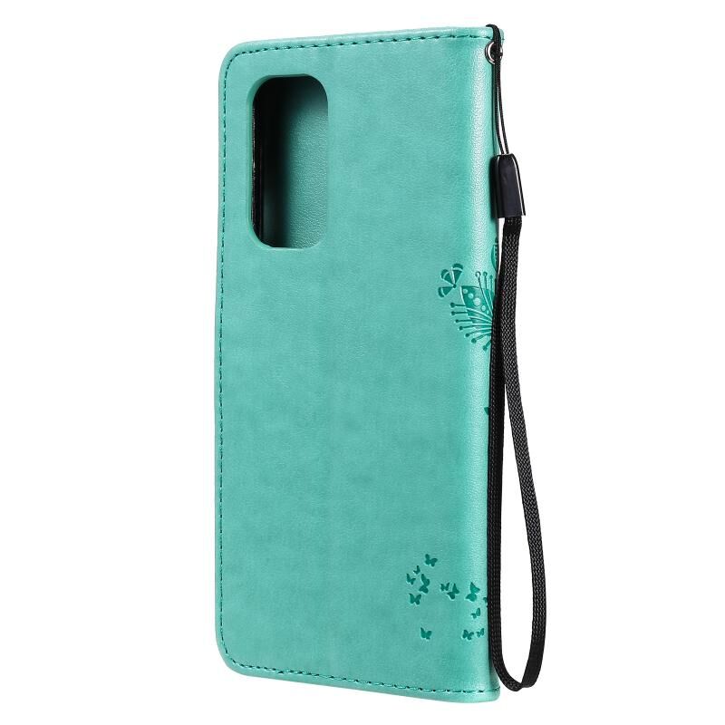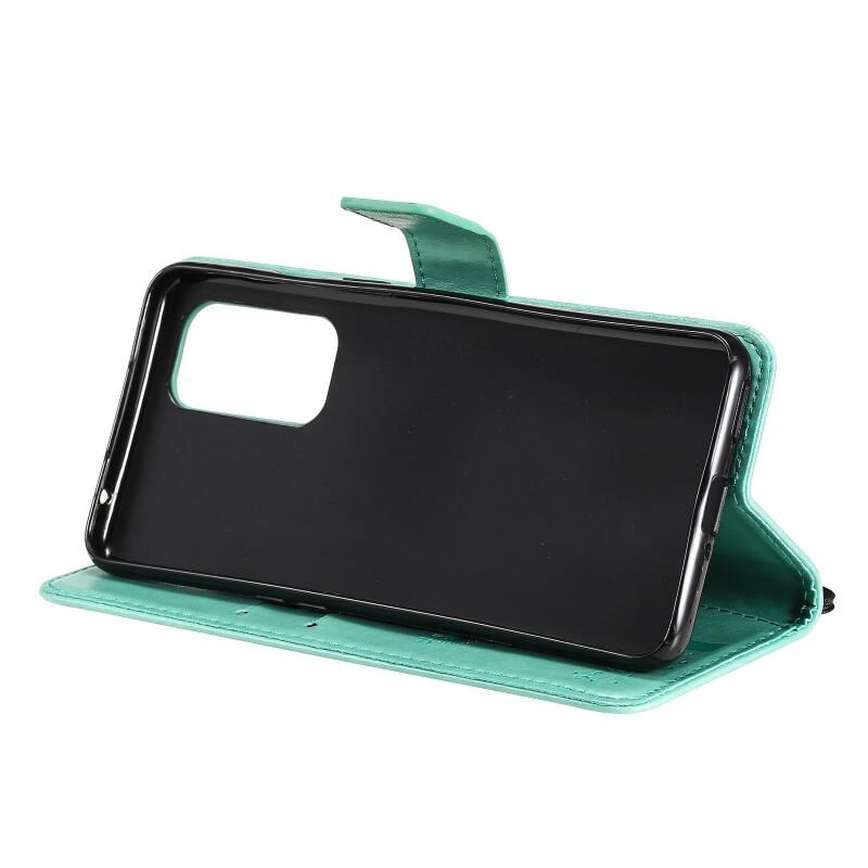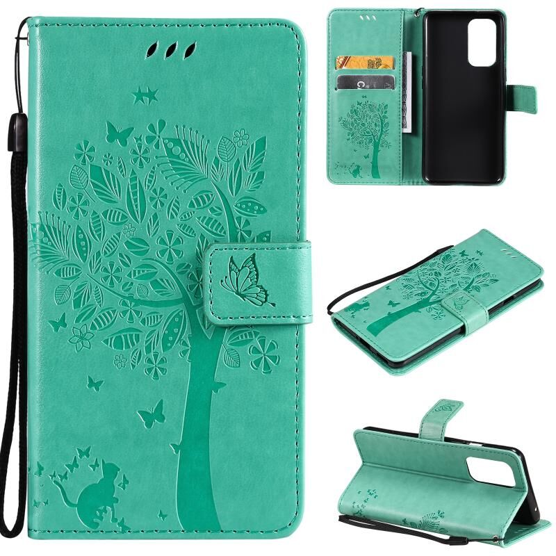 Για OnePlus 9 δέντρο & Cat μοτίβο πιεσμένη εκτύπωση οριζόντια Flip PU δέρμα υπόθεση με κάτοχο & υποδοχές για κάρτες & πορτοφόλι & κορδόνι (πράσινο)