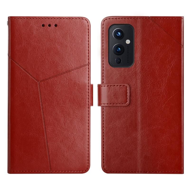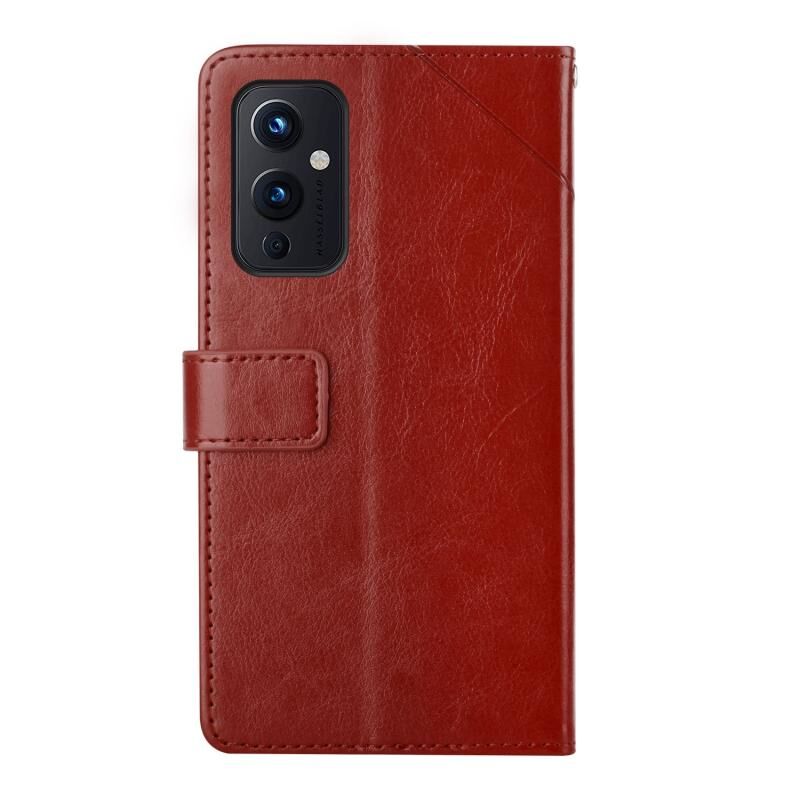 Για OnePlus 9 Y ραφή οριζόντια Flip υπόθεση τηλεφώνου δέρμα (καφέ)