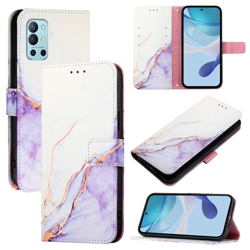 For OnePlus 9R / 8T PT003 Marble Pattern Flip Leather Phone Case(White Purple)