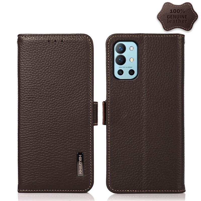 Θήκη τηλεφώνου OnePlus 9R KHAZNEH με μαγνητικό κλείσιμο, από γνήσιο δέρμα Litchi και προστασία RFID (Μαύρο)