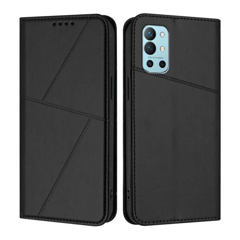 For OnePlus 9R Strong Magnetic Frosted Flip Leather Phone Case(Black)