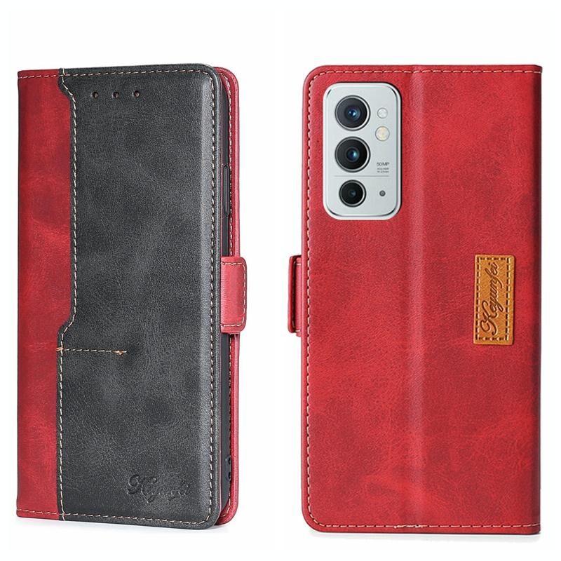 Για OnePlus 9RT 5G αντίθεση χρώμα πλευρά πόρπη δερμάτινη θήκη τηλεφώνου (κόκκινο + μαύρο)
