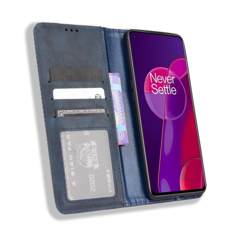 Για OnePlus 9RT 5G Μαγνητική πόρπη Retro Crazy Horse Υφή Οριζόντια Flip τηλέφωνο δερμάτινη θήκη με κάτοχο & υποδοχές καρτών & πλαίσιο φωτογραφιών (μπλε)