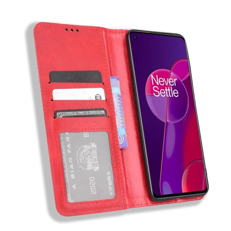 Για OnePlus 9RT 5G Μαγνητική πόρπη Retro Crazy Horse Υφή Οριζόντια Flip τηλέφωνο δερμάτινη θήκη με υποδοχή & υποδοχές καρτών & πλαίσιο φωτογραφιών (κόκκινο)
