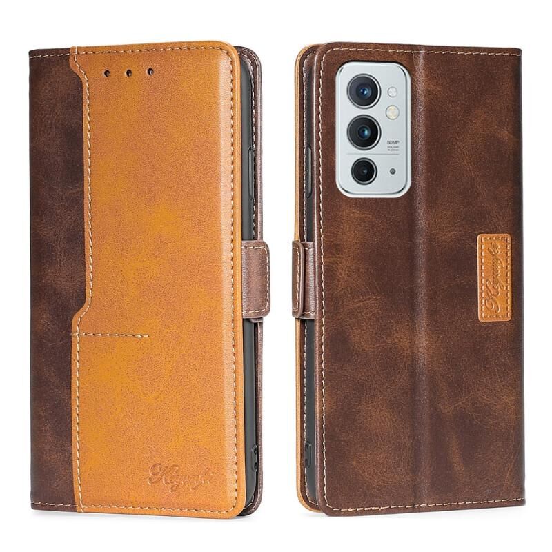Για OnePlus 9RT 5G Ρετρό υφή αντίθεση χρώμα πλευρά πόρπη οριζόντια Flip δέρμα τηλέφωνο υπόθεση με κάτοχο & υποδοχές για κάρτες & πορτοφόλι (σκούρο καφέ + χρυσό)