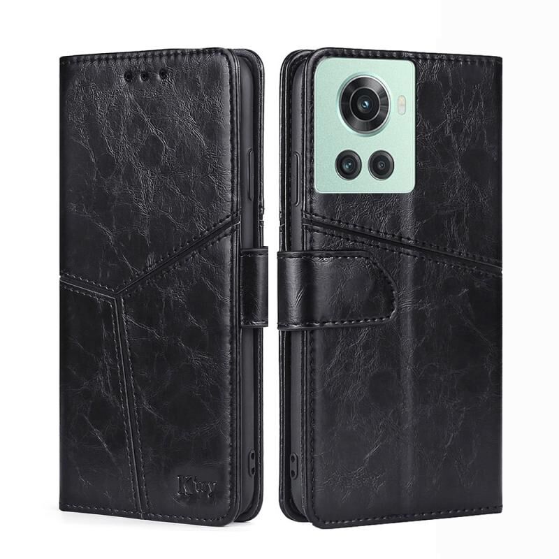 Για OnePlus Ace/10R γεωμετρική ραφή οριζόντια Flip TPU + PU δέρμα τηλέφωνο υπόθεση (μαύρο)