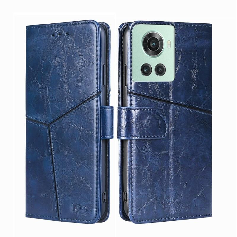 Για OnePlus Ace/10R γεωμετρική ραφή οριζόντια Flip TPU + PU δέρμα τηλέφωνο υπόθεση (μπλε)