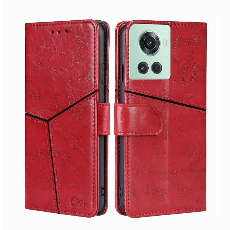 Για OnePlus Ace/10R γεωμετρική ραφή οριζόντια Flip TPU + PU δέρμα τηλέφωνο υπόθεση (κόκκινο)