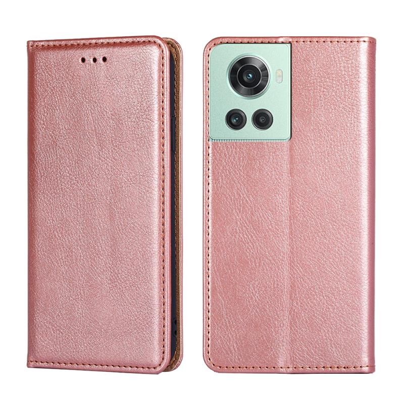 Για OnePlus Ace / 10R Γυαλιστερό λάδι στερεό χρώμα μαγνητικό δέρμα τηλέφωνο υπόθεση (Rose Gold)