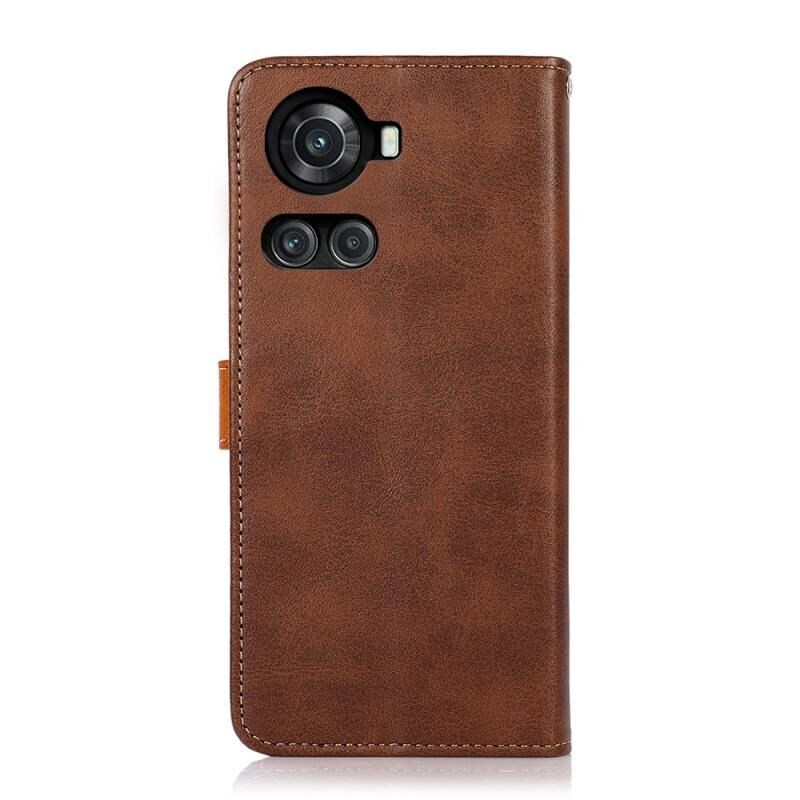 Θήκη τηλεφώνου από δέρμα με υφή δερμάτινου μοσχαριού διπλής απόχρωσης KHAZNEH για OnePlus Ace / 10R (Μαύρο)