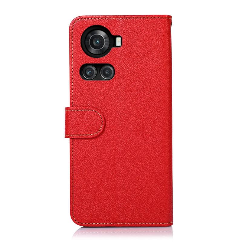 Θήκη τηλεφώνου από δέρμα με υφή Litchi KHAZNEH για OnePlus Ace / 10R με προστασία RFID (Μπλε)
