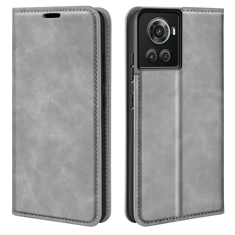 Για OnePlus Ace / 10R Retro-skin μαγνητική δερμάτινη θήκη τηλεφώνου αναρρόφησης (γκρι)