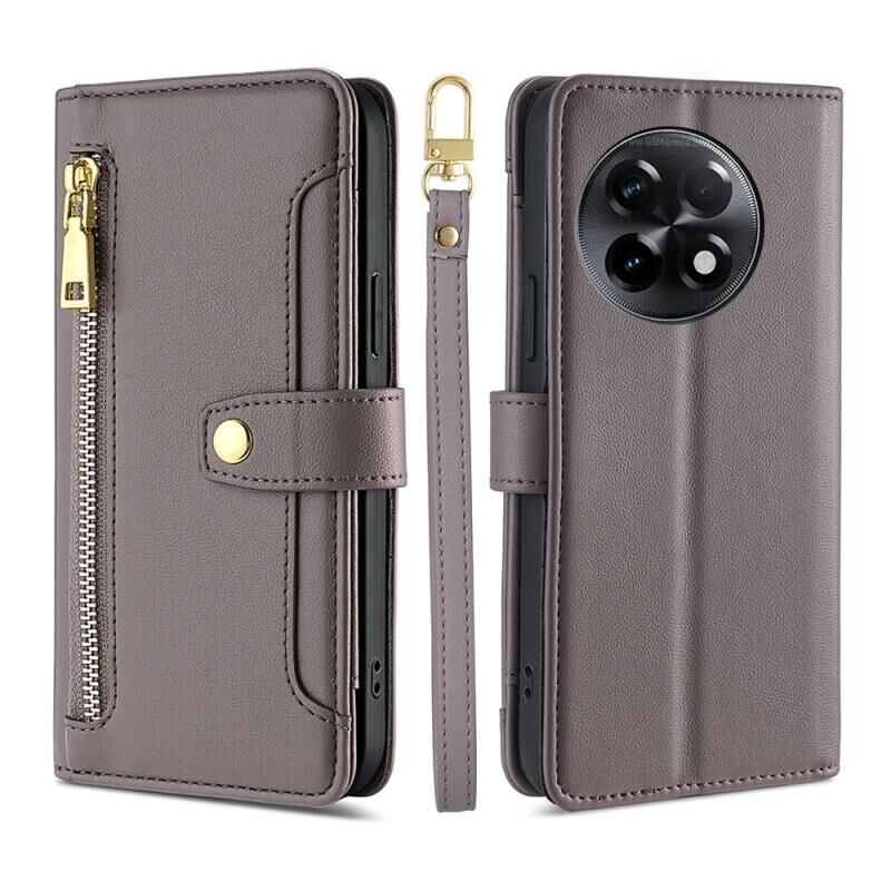 Θήκη τηλεφώνου από δέρμα με υφή προβάτου, διαγώνια, με φερμουάρ και θήκη πορτοφολιού για OnePlus Ace 2/11R (Μαύρο)