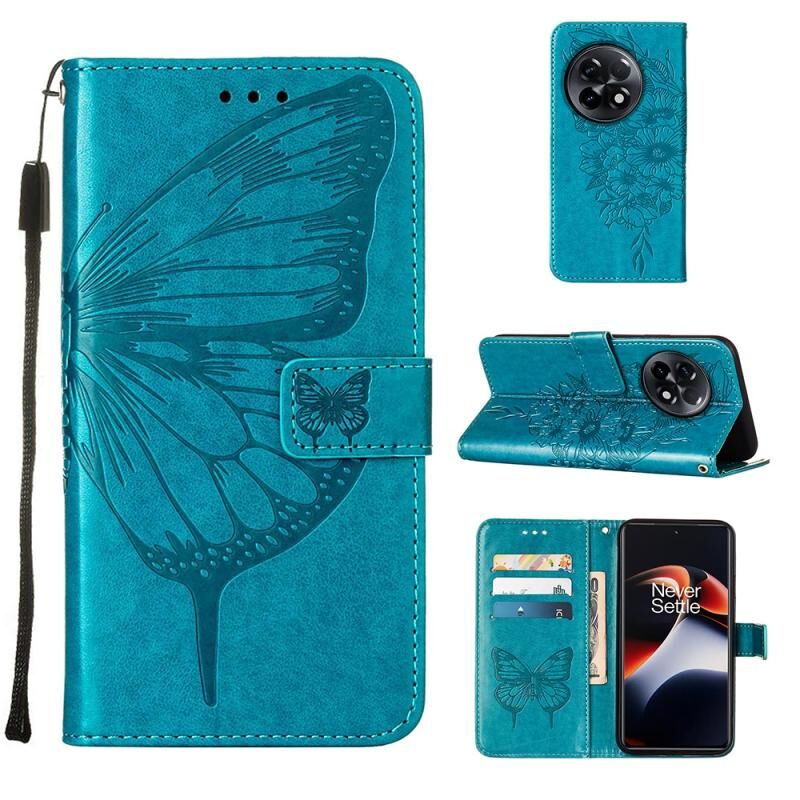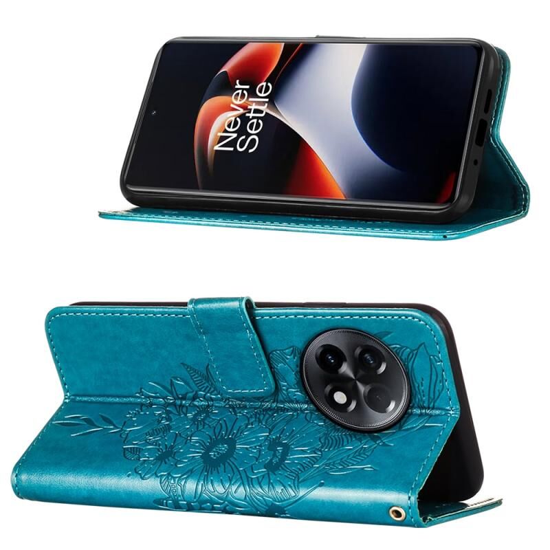 Θήκη τηλεφώνου από δέρμα με ανάγλυφο σχέδιο πεταλούδας για OnePlus Ace 2 5G / 11R 5G (Μαύρο)