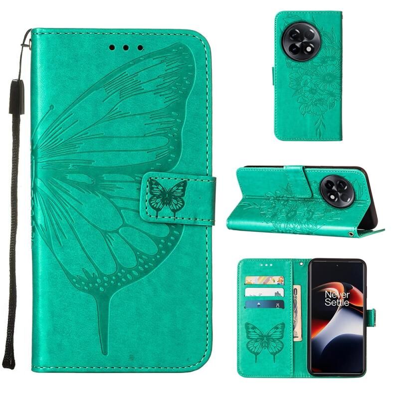 Θήκη τηλεφώνου από δέρμα με ανάγλυφο σχέδιο πεταλούδας για OnePlus Ace 2 5G / 11R 5G (Μαύρο)