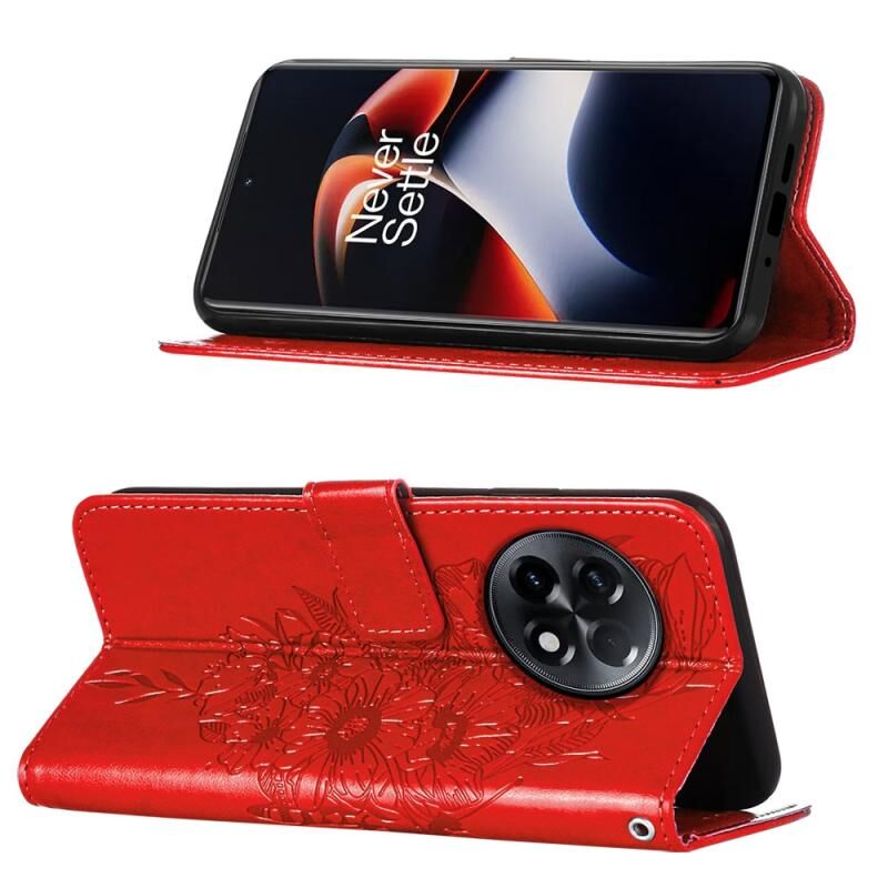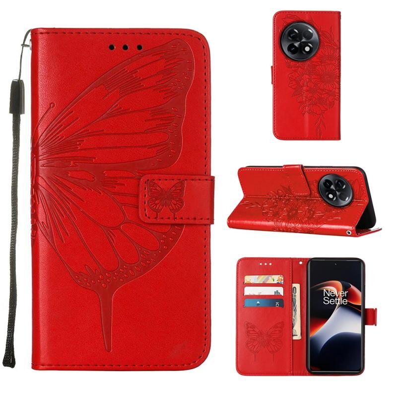 Θήκη τηλεφώνου από δέρμα με ανάγλυφο σχέδιο πεταλούδας για OnePlus Ace 2 5G / 11R 5G (Μαύρο)