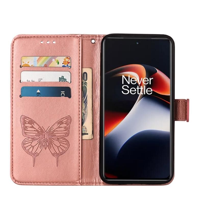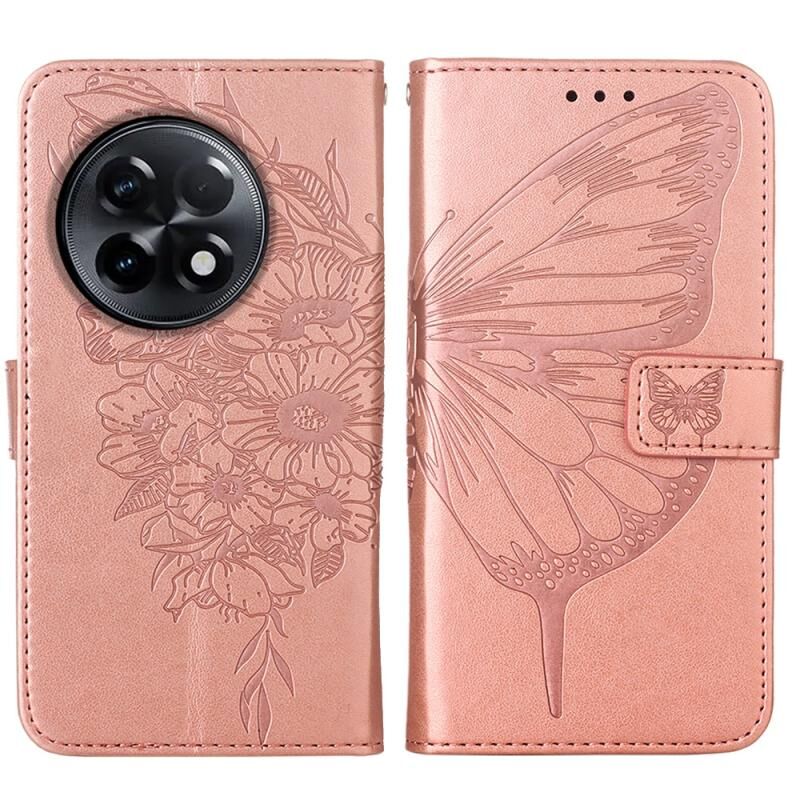Θήκη τηλεφώνου από δέρμα με ανάγλυφο σχέδιο πεταλούδας για OnePlus Ace 2 5G / 11R 5G (Μαύρο)