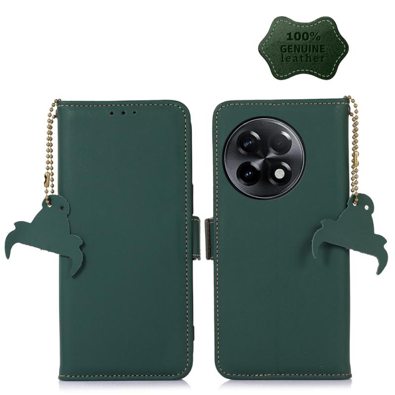 For OnePlus Ace 2 5G / 11R 5G Genuine Leather Magnetic RFID Leather Phone Case(Green)