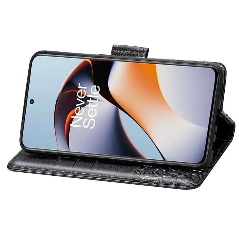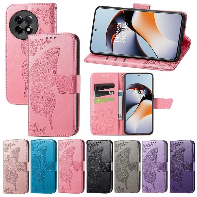 Θήκη τηλεφώνου από δέρμα με ανάγλυφο σχέδιο πεταλούδας και λουλουδιών για OnePlus Ace 2 (Μπλε)