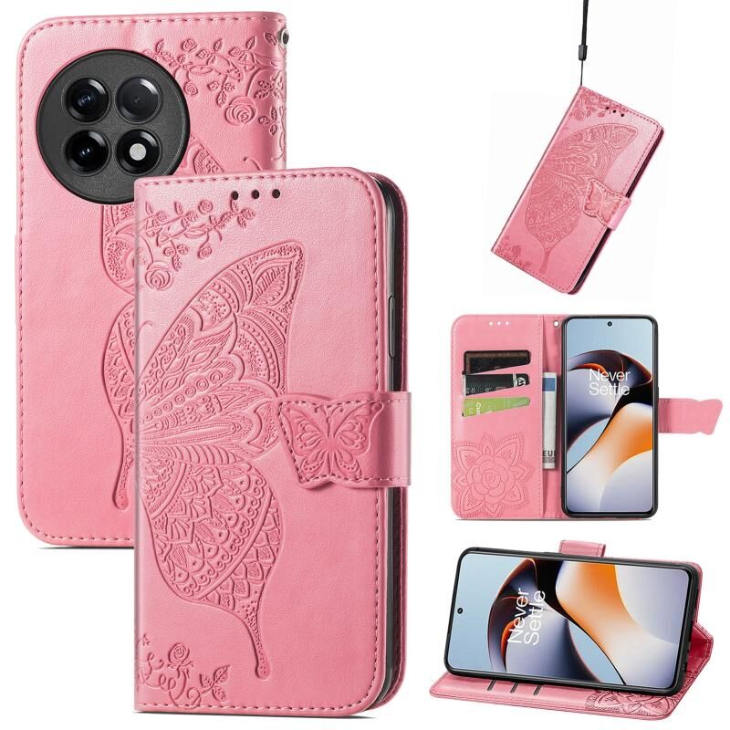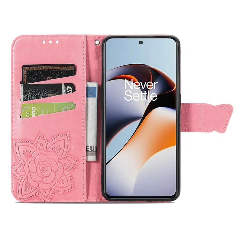 Θήκη τηλεφώνου από δέρμα με ανάγλυφο σχέδιο πεταλούδας και λουλουδιών για OnePlus Ace 2 (Μπλε)
