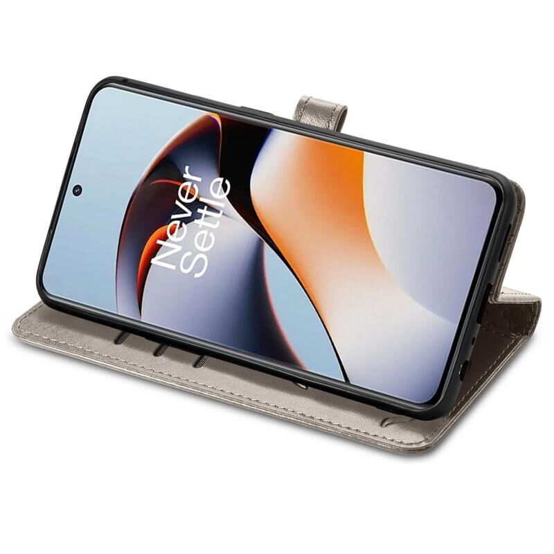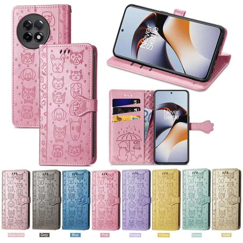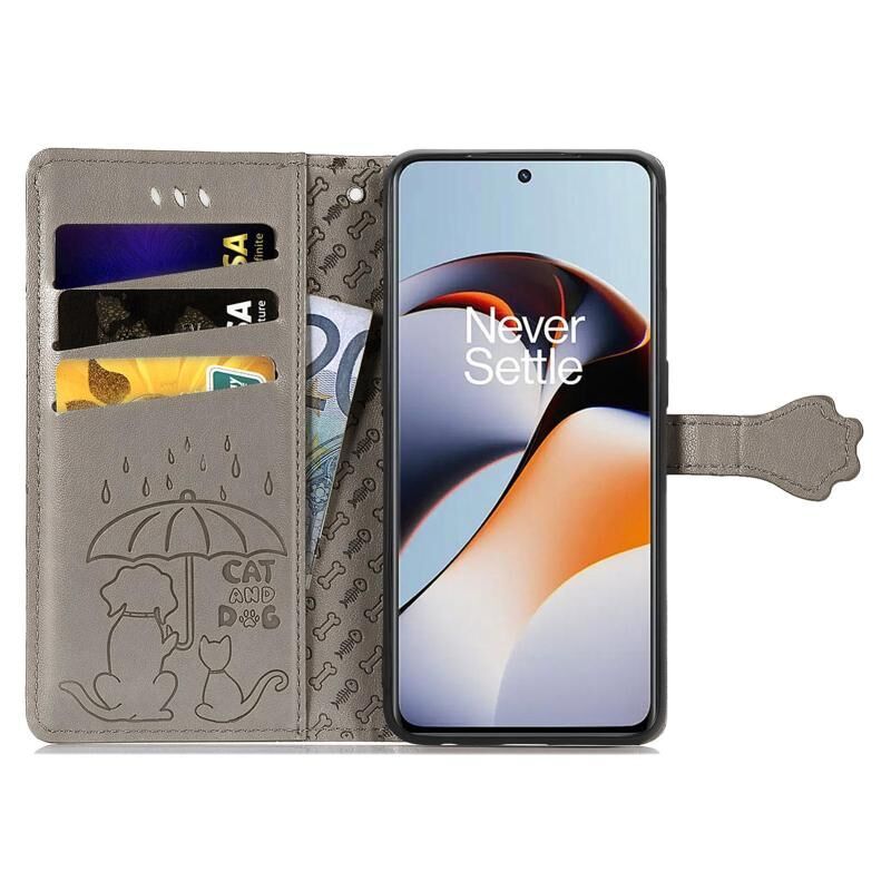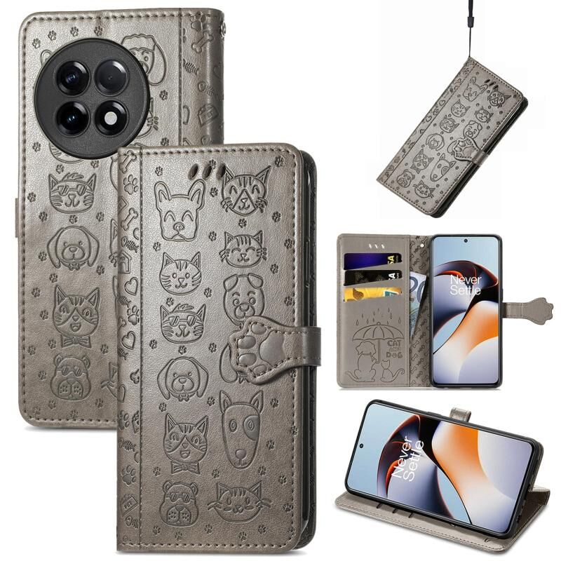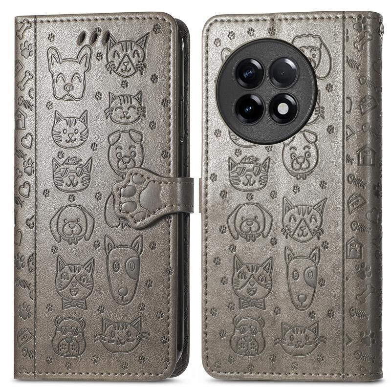 For OnePlus Ace 2 Cat and Dog Embossed Phone Leather Phone Case(Gray)
