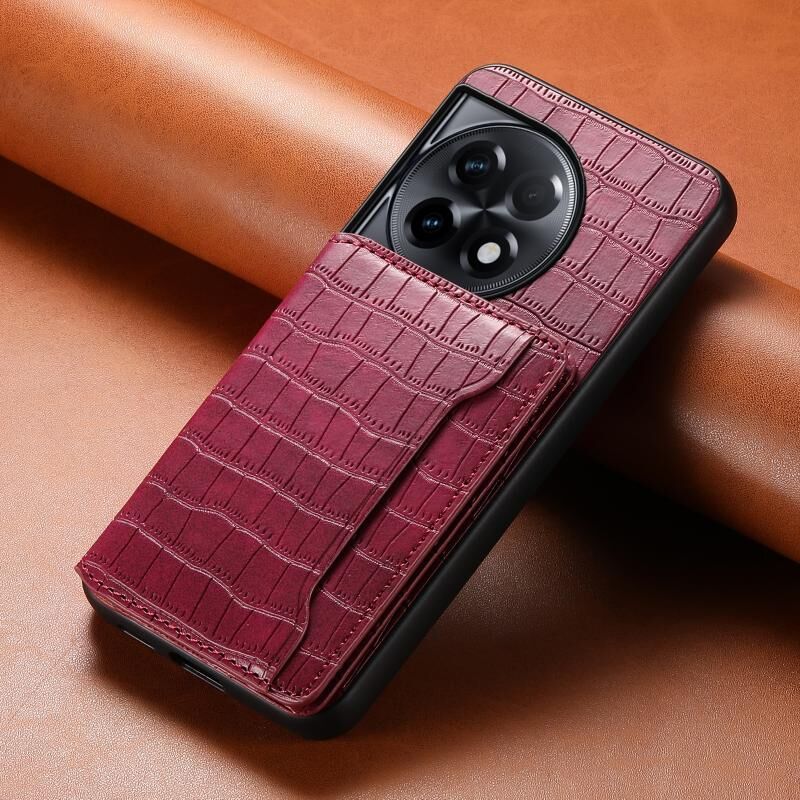 Για OnePlus Ace 2 Θήκη Τηλεφώνου με Υφή Κροκόδειλου, Σχεδιασμός Κάρτας, Πλήρης Κάλυψη (Καφέ)