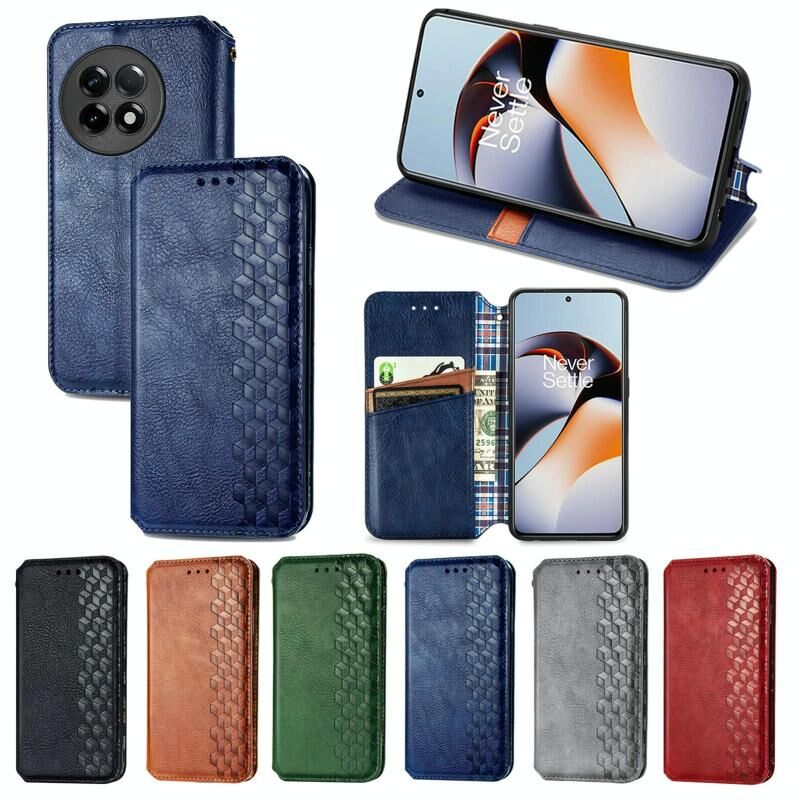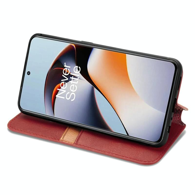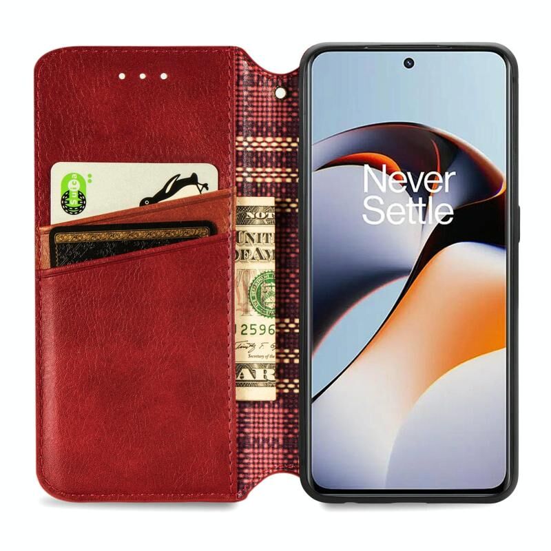 Για OnePlus Ace 2 Cubic Grid πιεσμένο μαγνητικό δέρμα τηλέφωνο υπόθεση (κόκκινο)