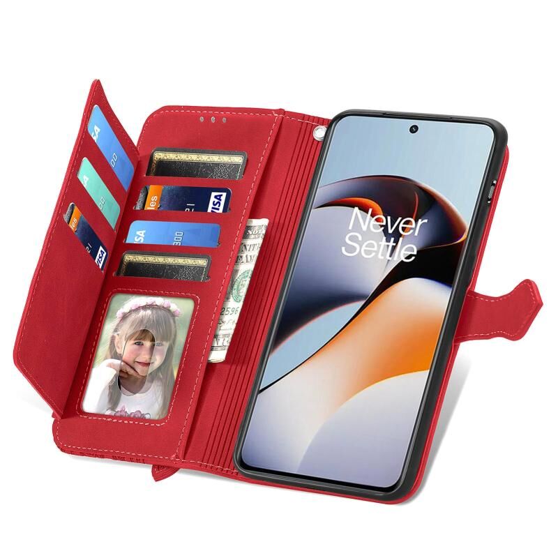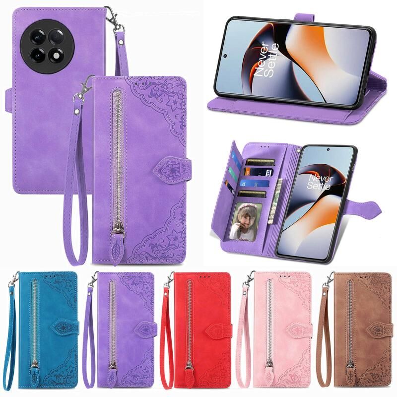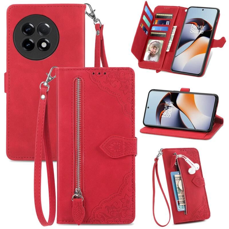 Για OnePlus Ace 2 ανάγλυφο λουλούδι φερμουάρ δερμάτινη θήκη τηλεφώνου (κόκκινο)
