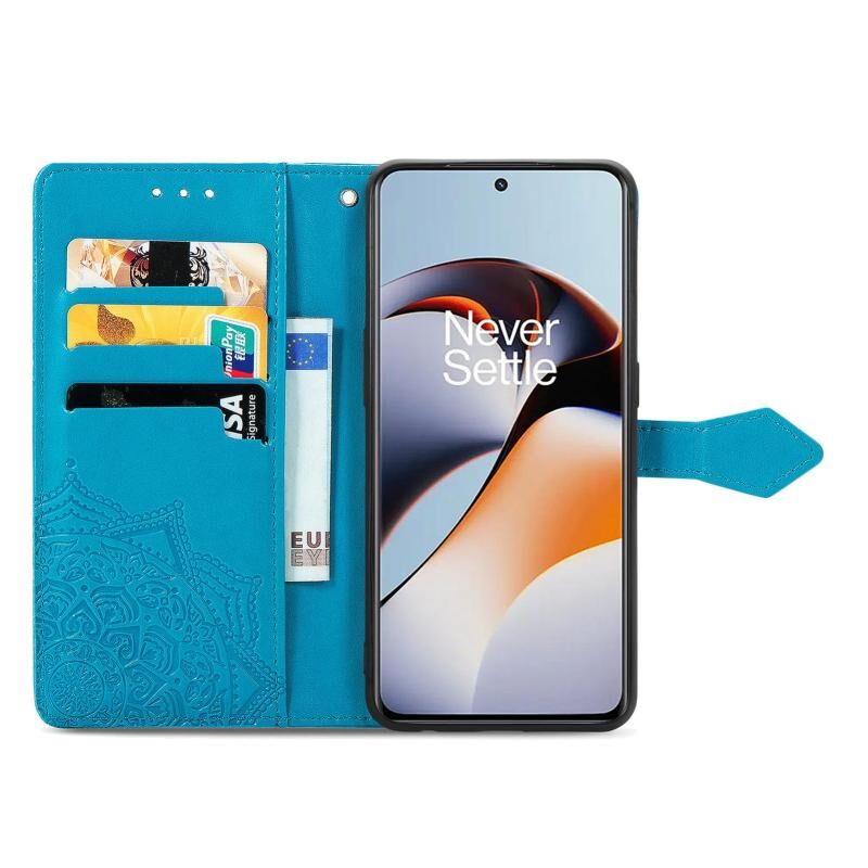 Για OnePlus Ace 2 Mandala λουλούδι ανάγλυφο δερμάτινη θήκη τηλεφώνου (μπλε)
