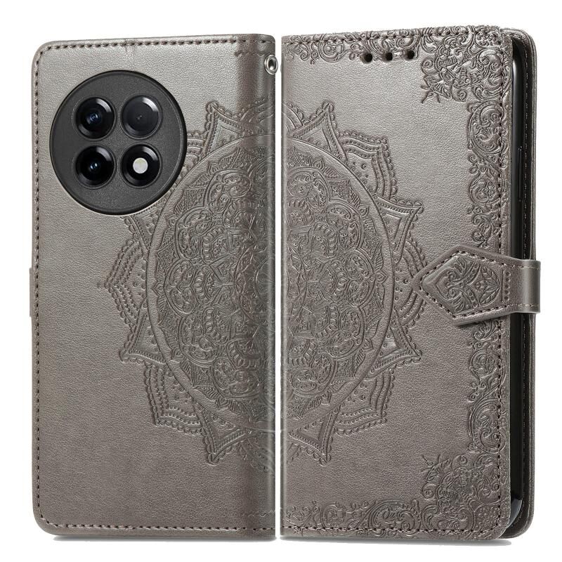 Για OnePlus Ace 2 Mandala λουλούδι ανάγλυφο δερμάτινη θήκη τηλεφώνου (γκρι)