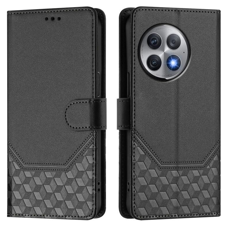 Για OnePlus Ace 2 Pro 5G Honeycomb ανάγλυφη RFID δερμάτινη θήκη τηλεφώνου (μαύρο)