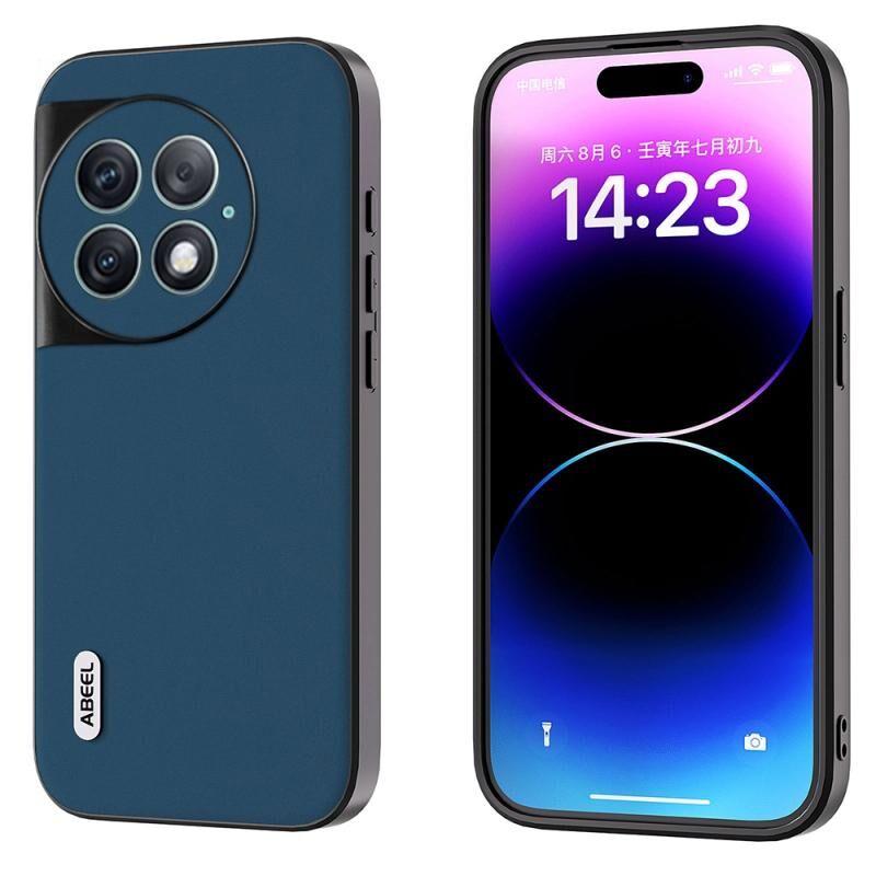 Θήκη τηλεφώνου από γνήσιο δέρμα για OnePlus Ace 2 Pro ABEEL, με μεταξένια απαλή μαύρη άκρη (Μπλε)