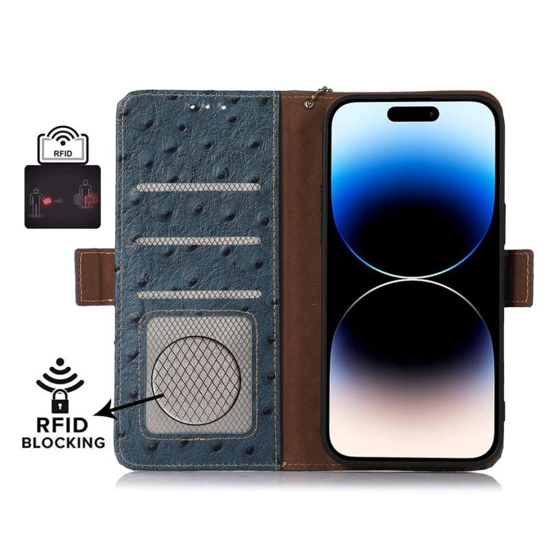 Θήκη τηλεφώνου από γνήσιο δέρμα με σχέδιο στρουθοκάμηλου για OnePlus Ace 2 Pro, με προστασία RFID (Πράσινο)
