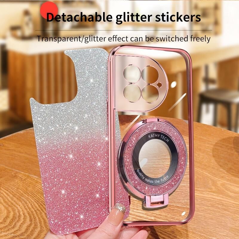 Για OnePlus Ace 2 Pro επιμεταλλωμένο διαβάθμιση Glitter στρογγυλό κάτοχος TPU τηλέφωνο υπόθεση (μωβ)