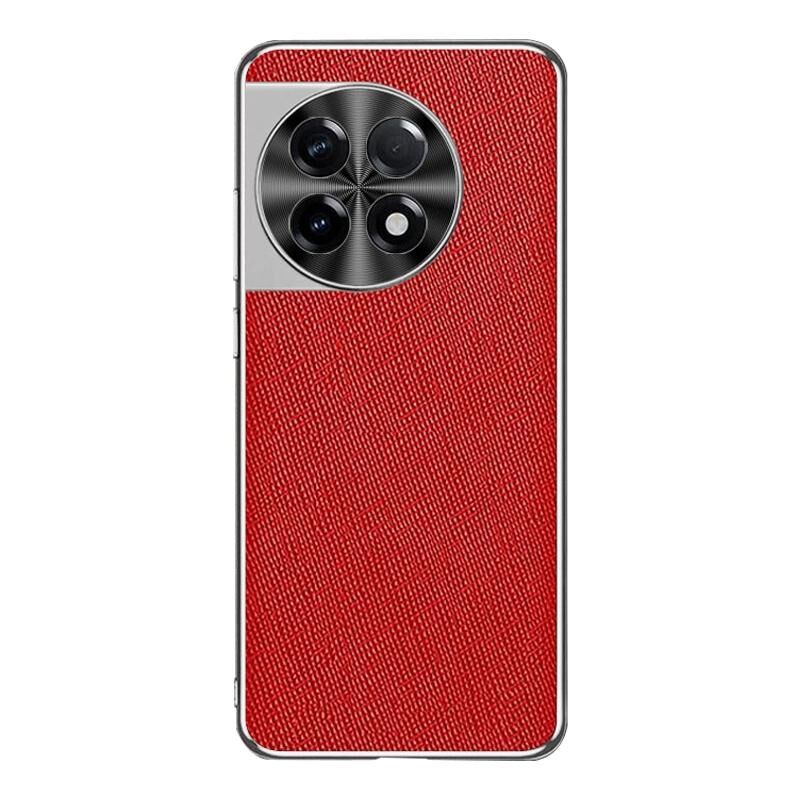 Για OnePlus Ace 2 Silver Edge Cross Υφή PU δέρμα τηλέφωνο υπόθεση (κόκκινο)
