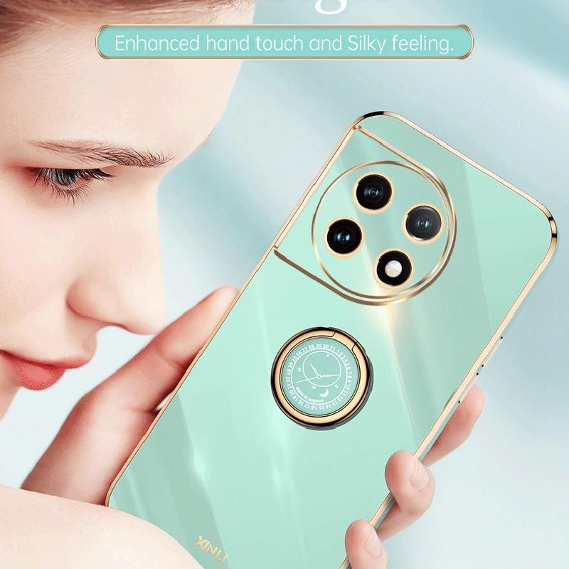 Θήκη τηλεφώνου TPU με ηλεκτροεπιμετάλλωση 6D και ευθεία άκρη για OnePlus Ace 2 XINLI με δακτύλιο στήριξης (Λευκό) (XINLI)