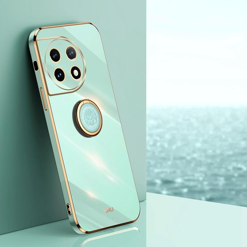 Θήκη τηλεφώνου TPU με ηλεκτροεπιμετάλλωση 6D και ευθεία άκρη για OnePlus Ace 2 XINLI με δακτύλιο στήριξης (Μέντα Πράσινο) (XINLI)