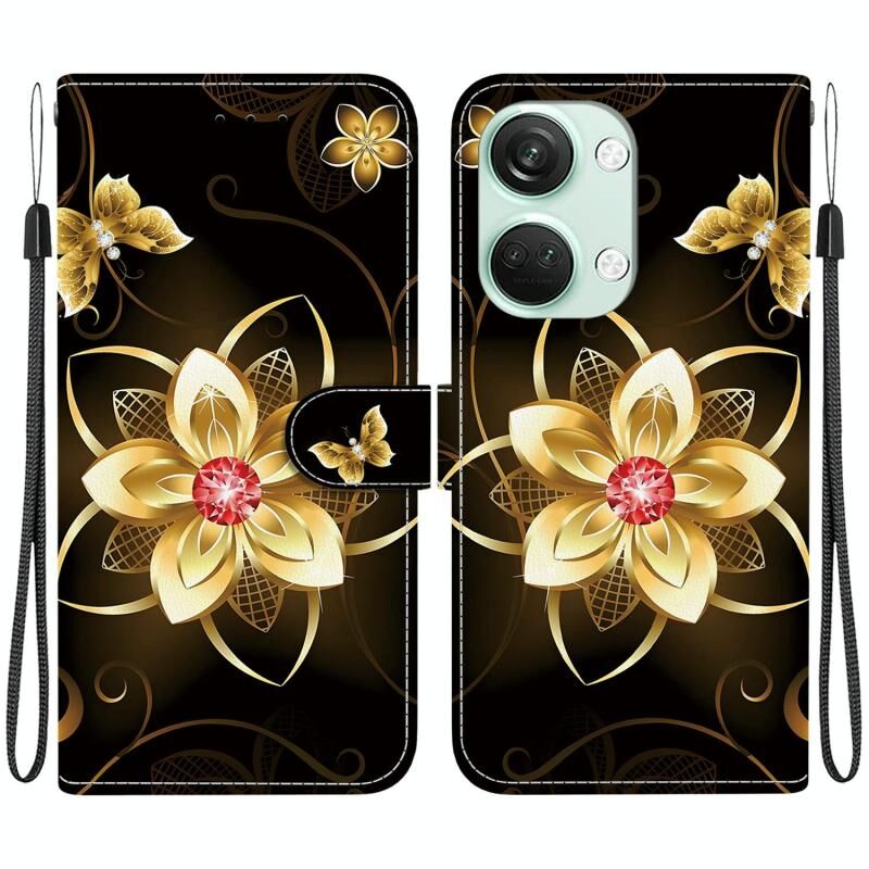 Θήκη τηλεφώνου από δέρμα με πολύχρωμο σχέδιο κρυστάλλινης υφής για OnePlus Ace 2V 5G / Nord 3 (Χρυσά φτερά πεταλούδας)